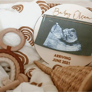 A beautiful disc to announce the pending arrival of your new baby.