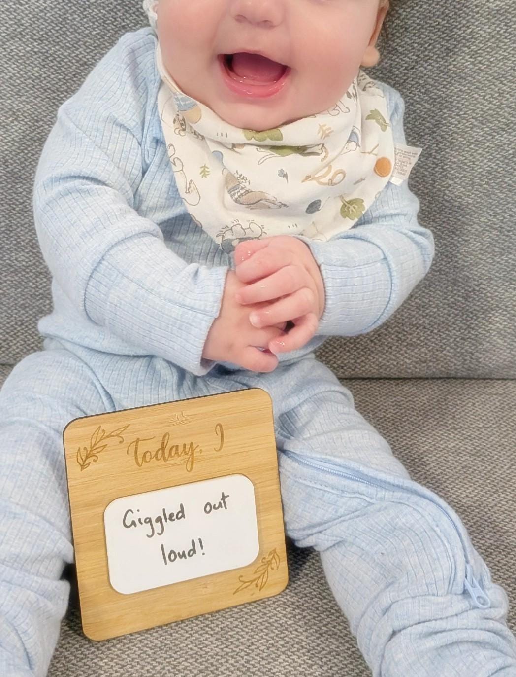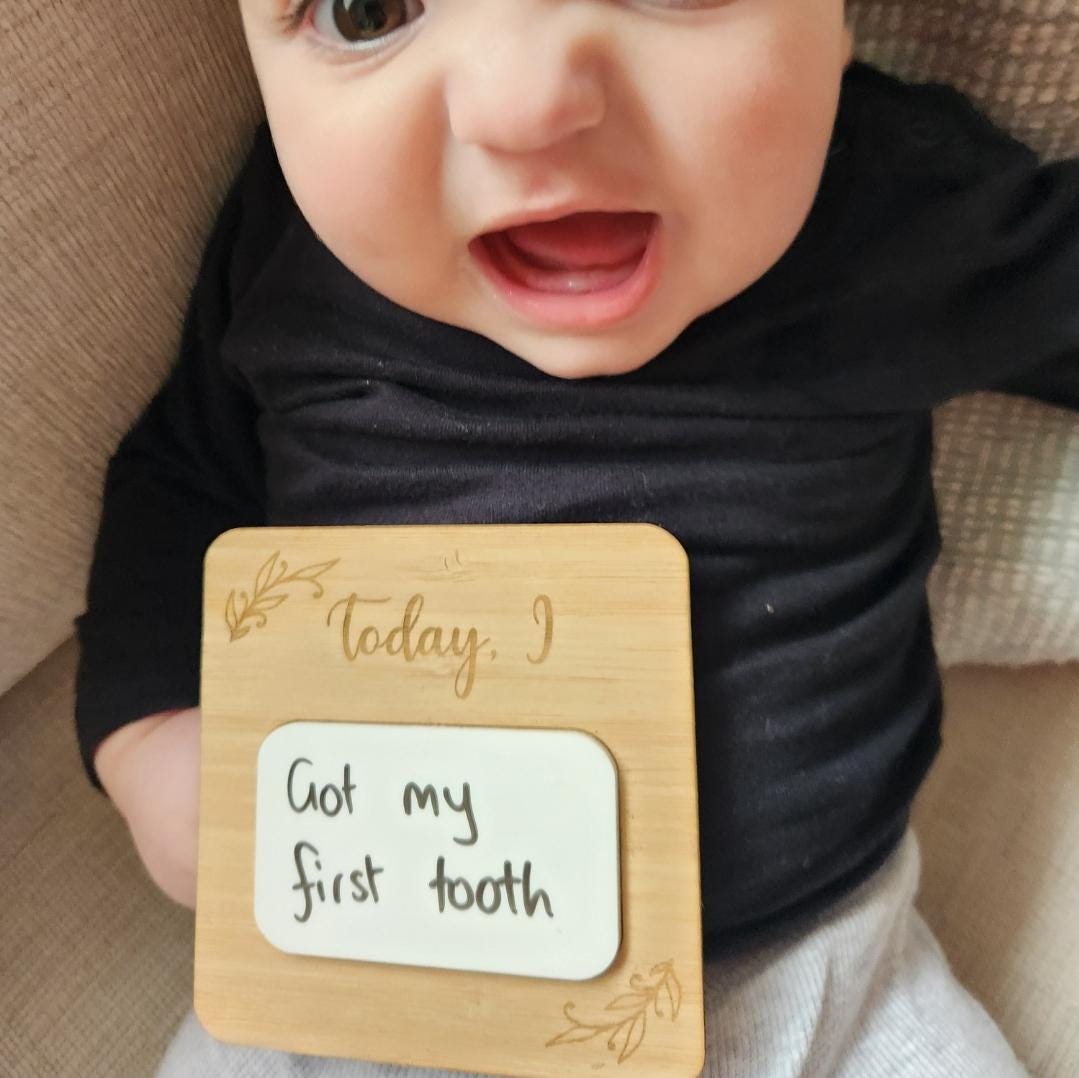Capture each and every one of your child's milestones with just one beautiful wooden Milestone card. All you need is a whiteboard marker!