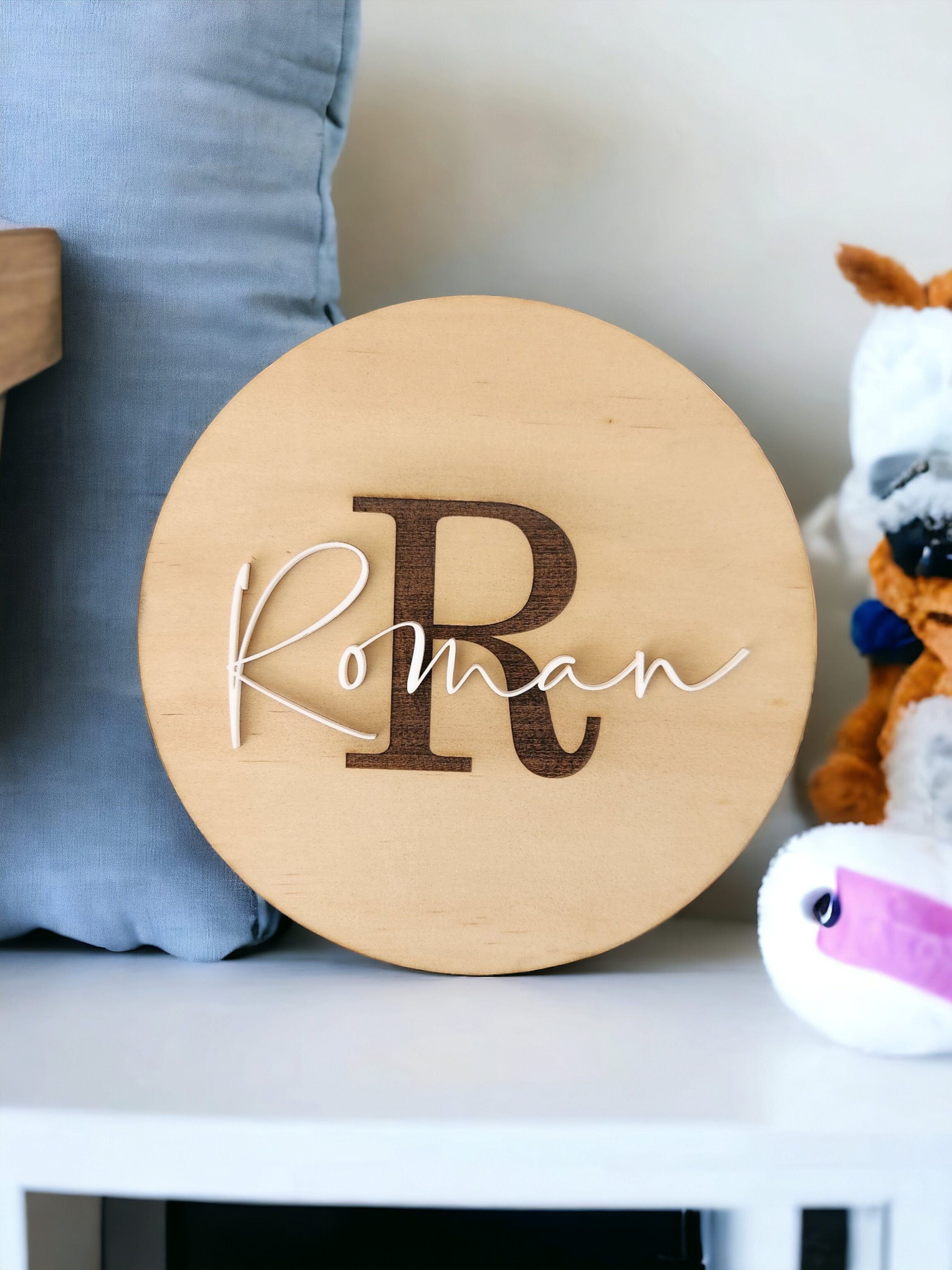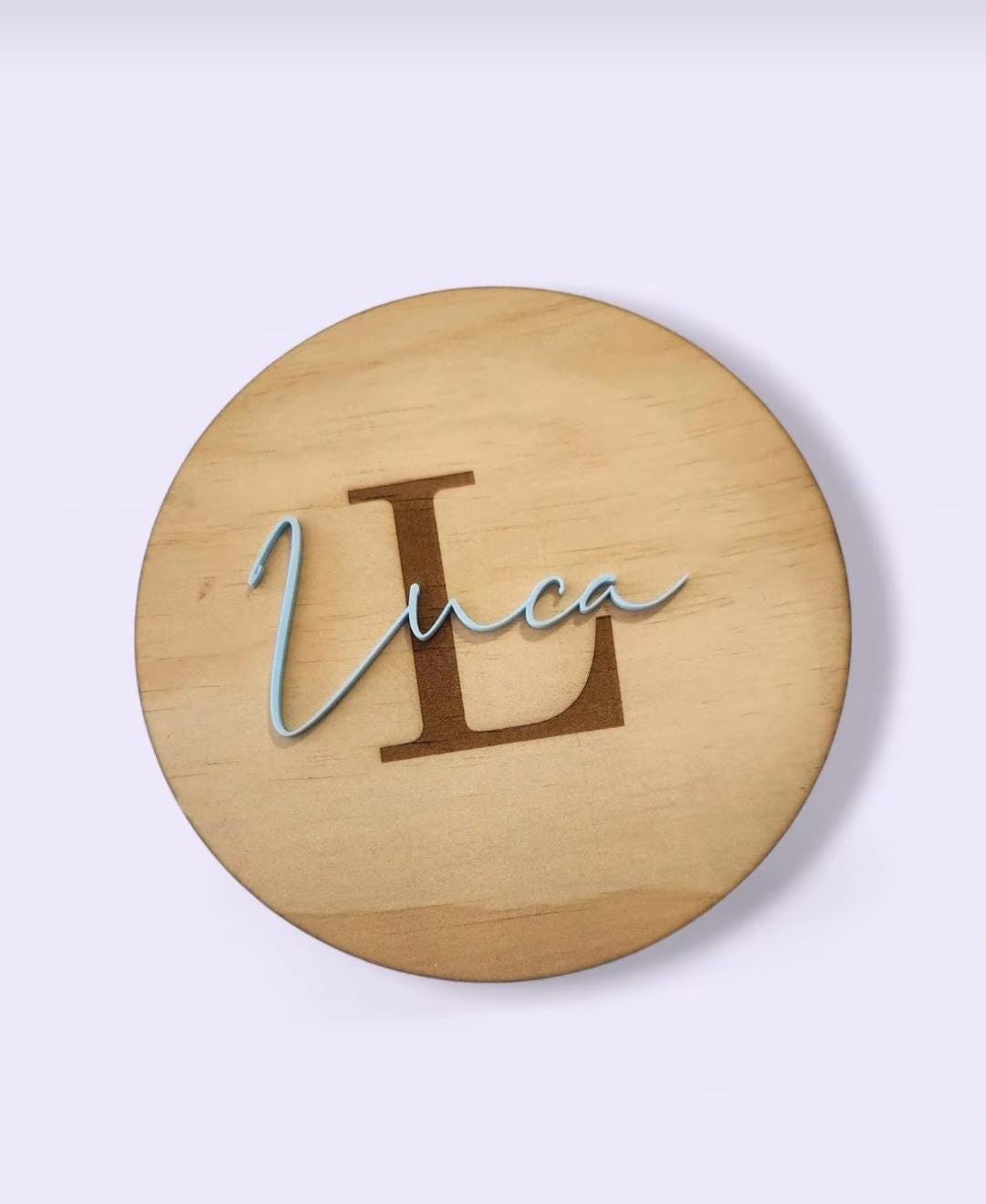🟫 PRODUCT INFORMATION • 3mm thick • Bamboo or Light Ply Wood and is hand sanded by me • Engraved initial • Acrylic name cut out • 18.5cm diameter • There may be some minor inconsistencies with each piece of timber. Your piece may differ from item shown in the pictures in this listing. Variations may include knots, wood grain and colour. This is not considered a fault, but rather a reflection of the natural nature of the timber. • Timber easel (optional) measures 12cm high
