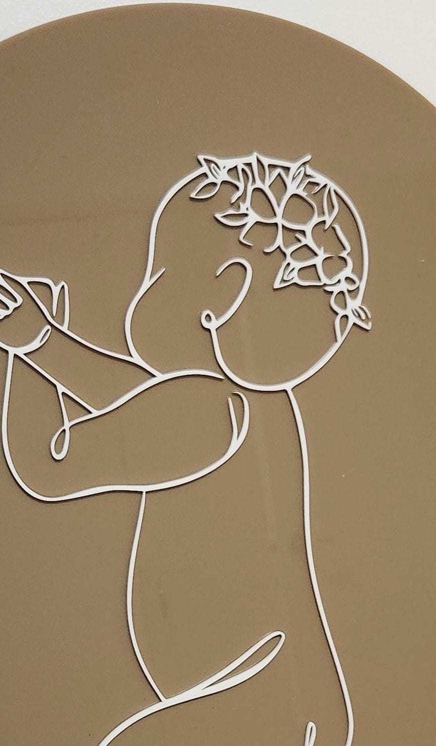 • Line art and baby's name - white acrylic