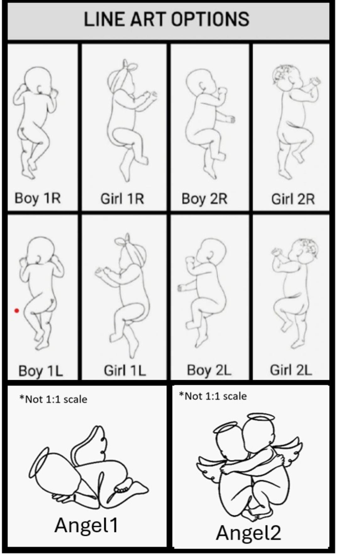 Please note that angel babies are not created at a 1:1 scale. However, they can still be made on the same plaque size featured in this listing (700 × 400mm), and birth details can still be included if desired.