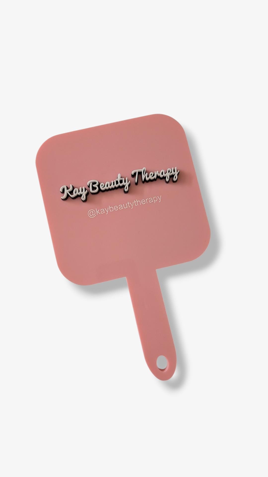 Elevate your client experience with our elegant hand-held personalised beauty mirror. it's the perfect finishing touch for salons, beauty studios, makeup artists and treatment spaces. Designed to feel both luxurious and practical, this mirror allows clients to admire their results up close while adding a refined, branded aesthetic to your workspace. Each piece can be customised with your salon name, Instagram handle or client name, making it ideal for professional use, retail add-ons or memorable gifting.