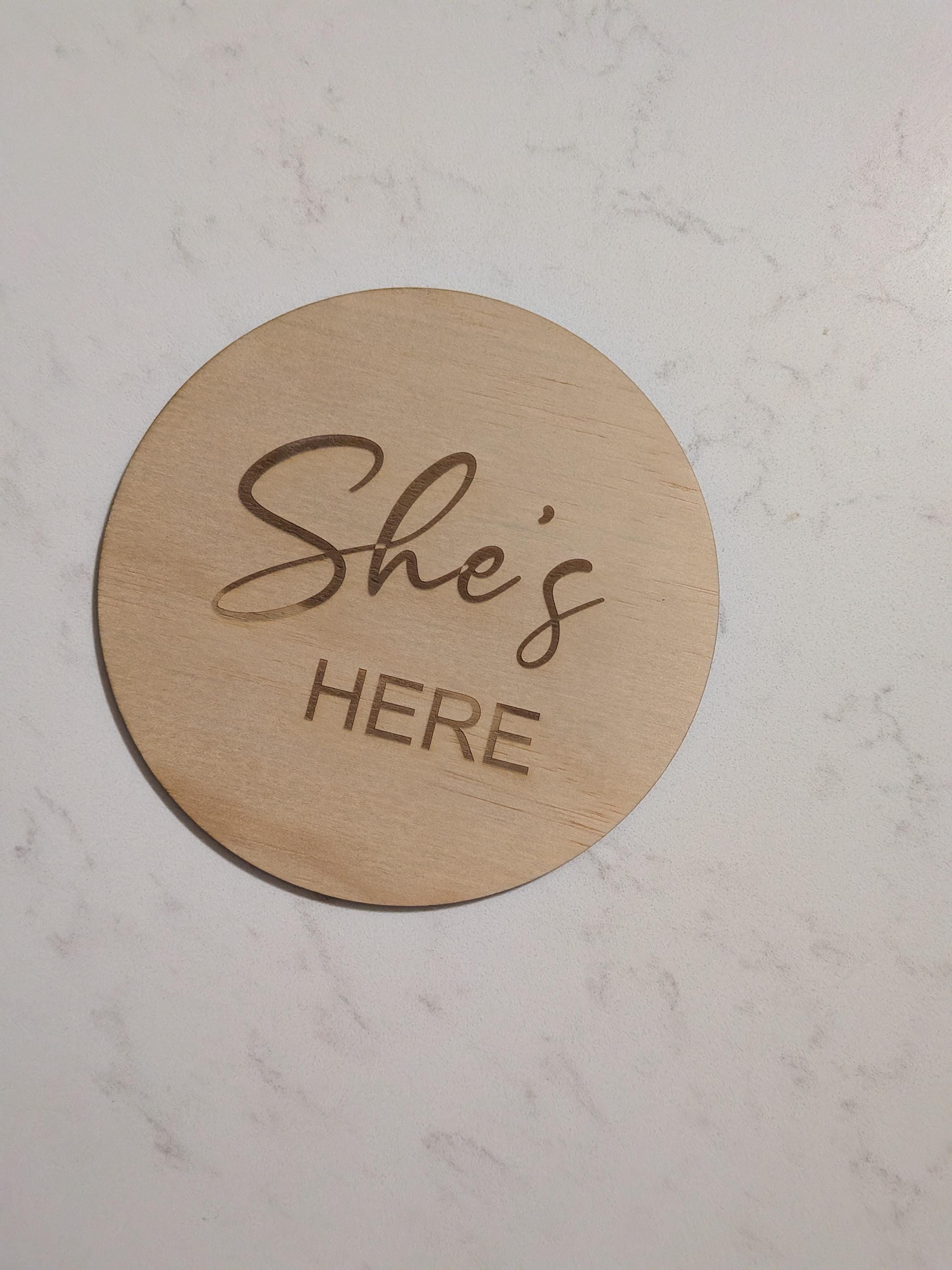 Reveal the gender of your baby to loved one's with this timber disc. A great keepsake, too!