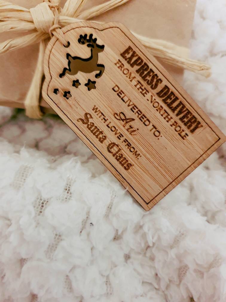 Santa's gift/s will be made a touch more special and exciting with this tag personalised with your child's name.