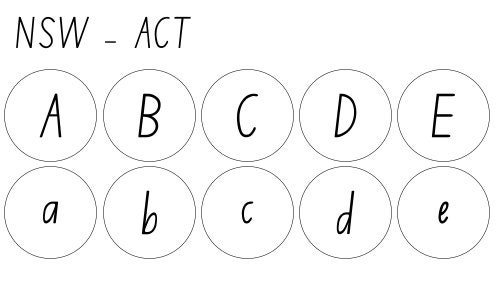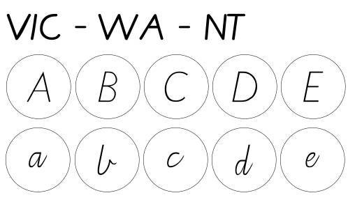 Each set is designed in Australian School Font style according to which state you're in. Font style options are as follows: ▪︎VIC - WA - NT: Victorian Modern Cursive ▪︎NSW - ACT: NSW Foundation Style ▪︎ TAS: TAS Modern Cursive ▪︎ SA: SA Modern Cursive ▪︎ Generic Format