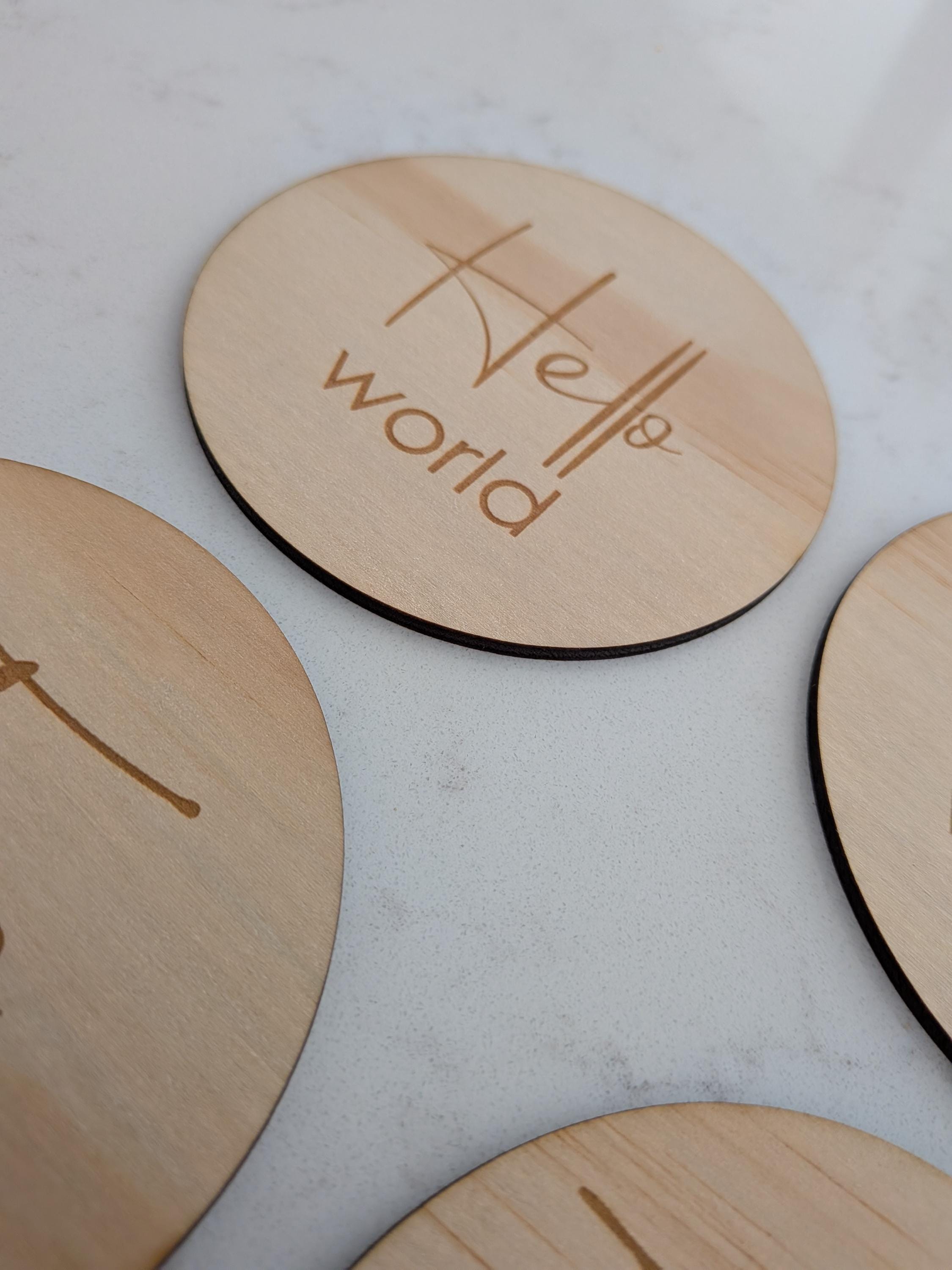 🟫 PRODUCT INFORMATION • Plywood • Each disc is 10mm X 100mm x 3mm • Each set contains 14 discs which read: - Hello World - One week old - One month old - Two months old - Three months old - Four months old - Five months old - Six months old - Seven months old - Eight months old - Nine months old - Ten months old - Eleven months old - One year old • Bonus bag tag included with each set with name of your choice. You may wish to have bubs name engraved, your own name or gift the tag to a loved one!